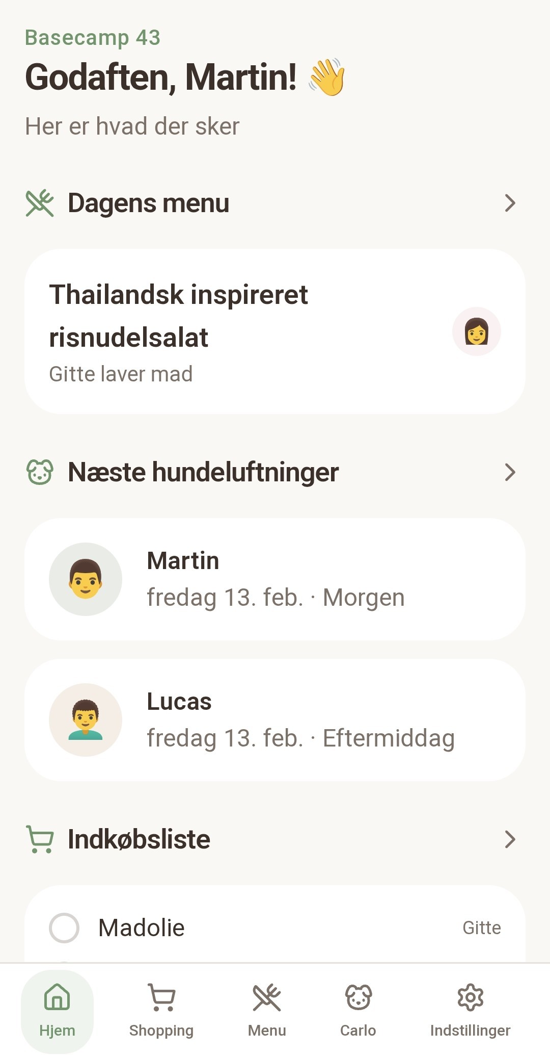 Vi er fem voksne, der bor sammen: to forældre og tre unge mennesker. Der er konstant koordinering. Indkøb, madplan, hvem der går med hunden, hvad vi mangler osv.